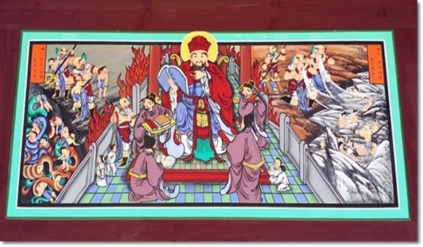 지옥에서 7번째 지옥까지 심판을 받고 지나가지만 전생에 죄를 많이 지은 자는 100일째 철상지옥, 1년째 풍도지옥, 3년째 흑암지옥의 재판을 또 받아야 한다고 합니다.