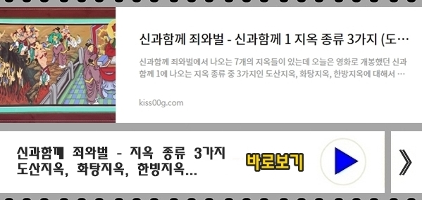 | 신과함께 죄와벌 - 신과함께 1 지옥 종류 3가지 (도산지옥, 화탕지옥, 한방지옥) (0) | 2023.10.27 |