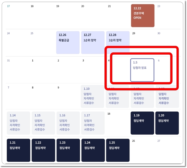 ④ 최종 당첨자 확인 및 서류 검수가 끝나고 당첨확인이 인정되면 2024년 1월 19일 금요일부터 1월 15일 목요일까지 정당계약하기