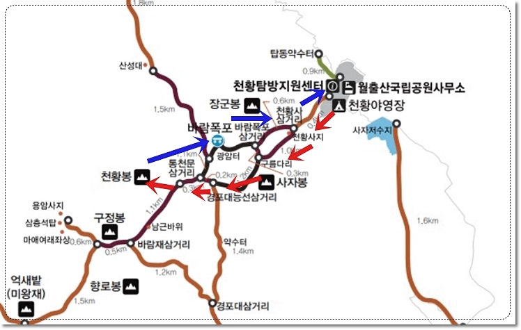 ▶ 바람폭포삼거리 - 천황탐방지원센터까지 1.3km