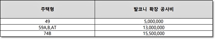 | 주택형 | 발코니 확장 공사비 |