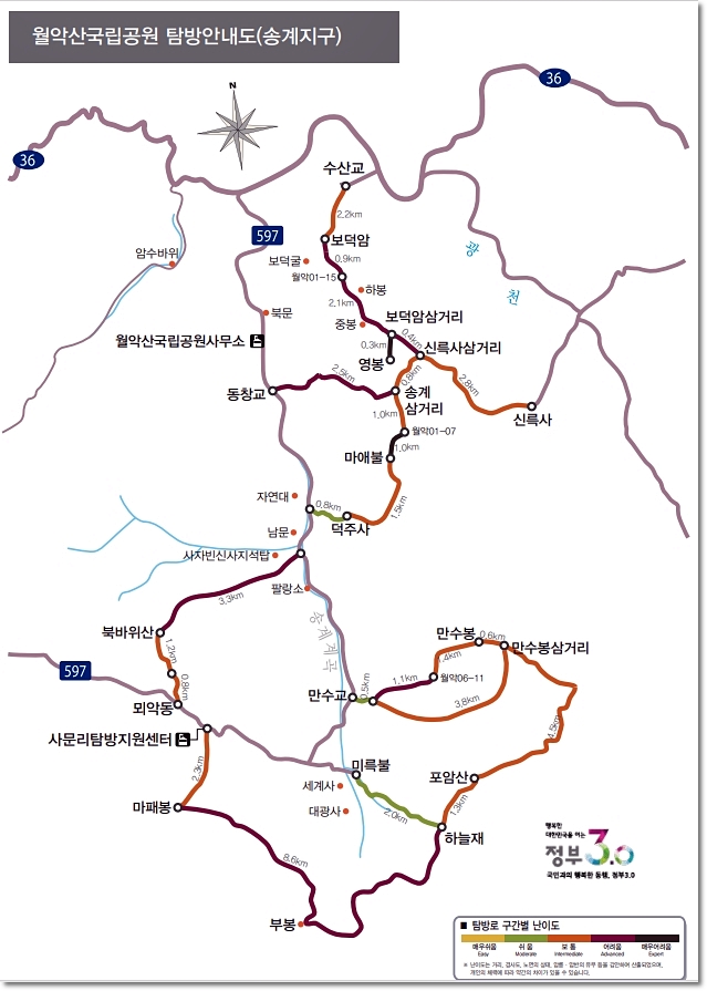 ◈ 월악산 등산코스 송계지구 등산지도 ◈