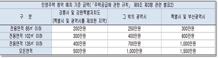 ② 전용면적 102㎡ 이하에 관심 있으신 분들은 청약통장에 300만 원 이상이 예치되어 있어야 합니다.