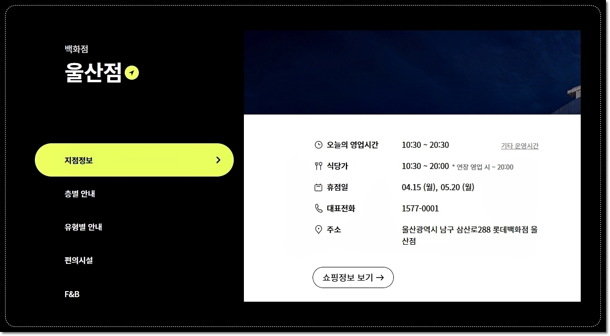 ● 울산 롯데백화점 6월 이후 휴무일은 아래 울산점 홈페이지에 방문하시면 바로 확인할 수 있으니 방문하셔서 울산점 롯데백화점 휴무일을 확인하시기 바랍니다.
