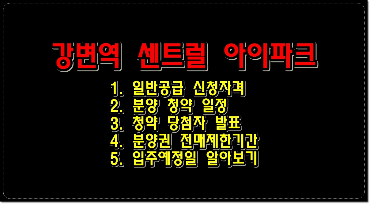 오늘은 강변역 센트럴아이파크아파트 청약 당첨자 발표 확인 방법이랑 분양권 전매제한기간, 일반공급 신청자격과 분양일정, 입주예정일 등에 대해서 알아보도록 하겠습니다.