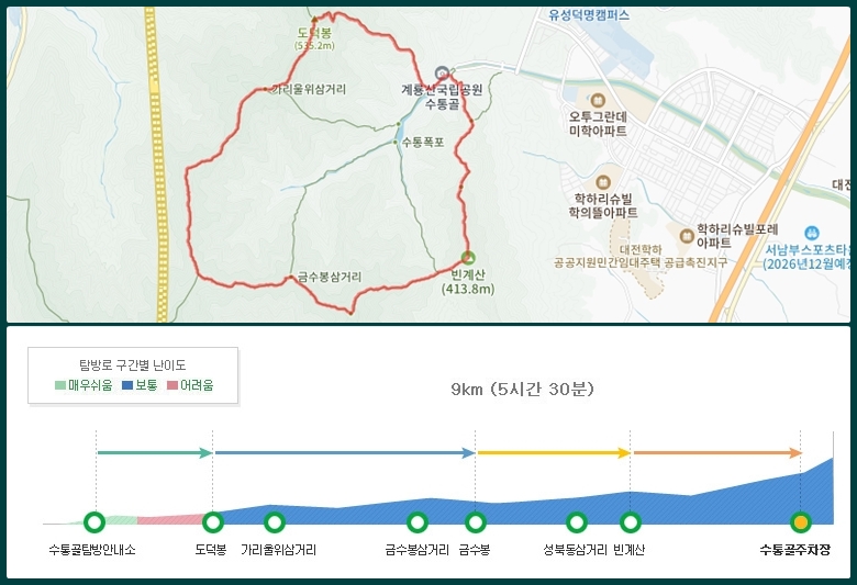 상세구간 : 수통골탐방안내소~도덕봉~자티고개~금수봉~빈계산~주차장