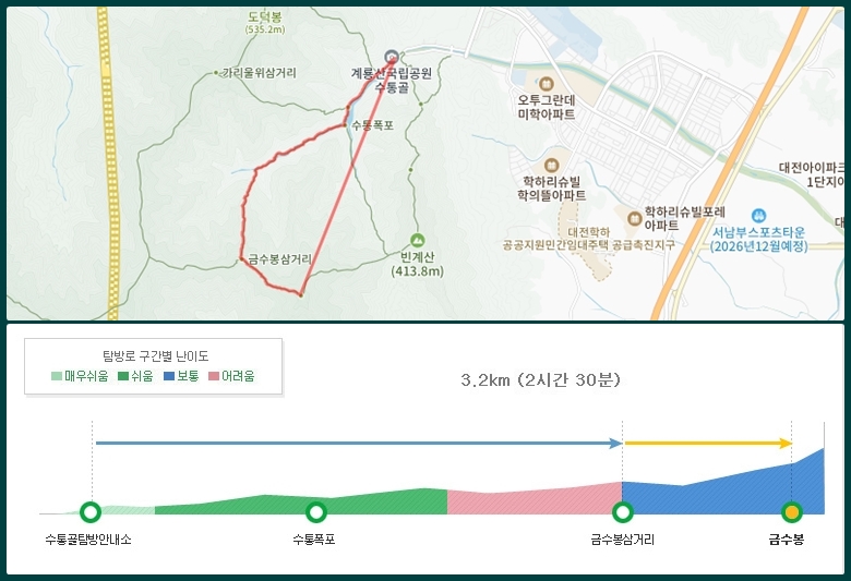 상세구간 : 수통골주차장~수통골탐방안내소~수통폭포~금수봉