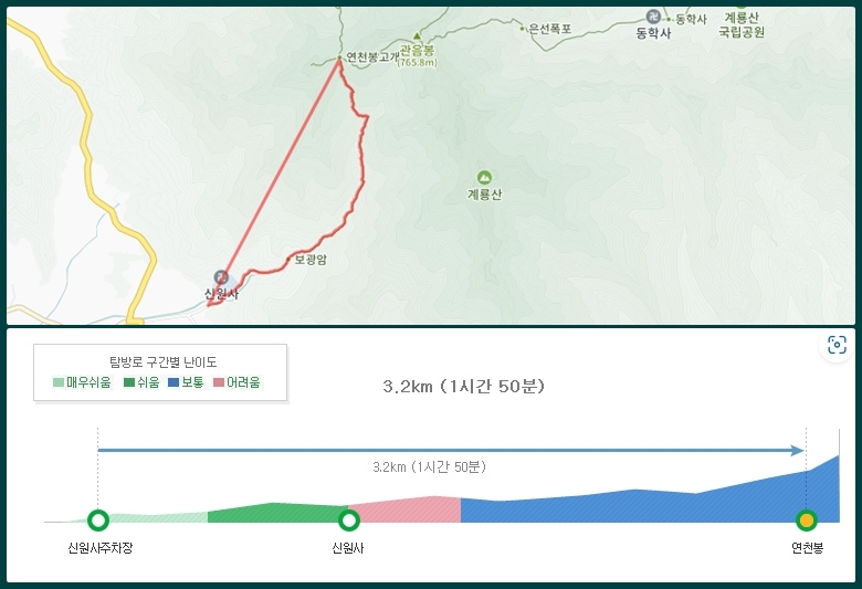 상세구간 : 신원사주차장~신원사~고왕암~연천봉