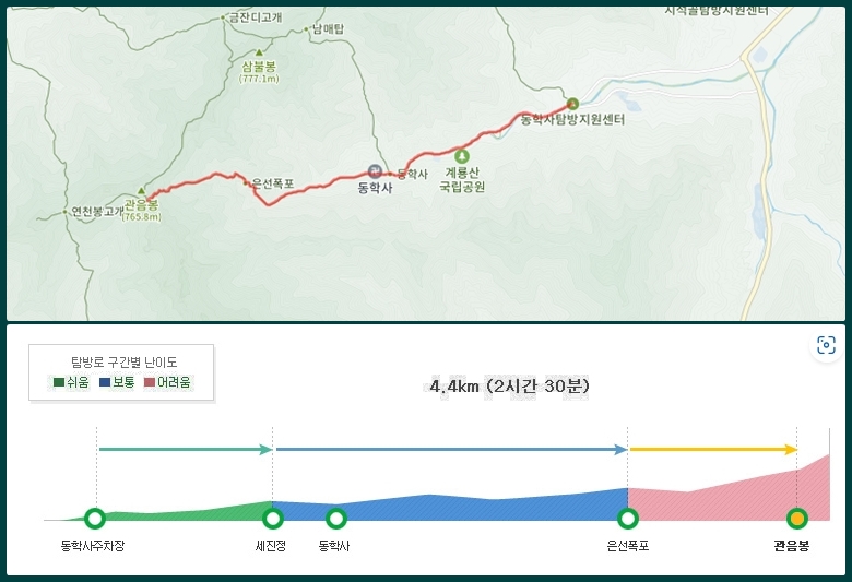 상세구간 : 동학사주차장~동학사~은선폭포~관음봉